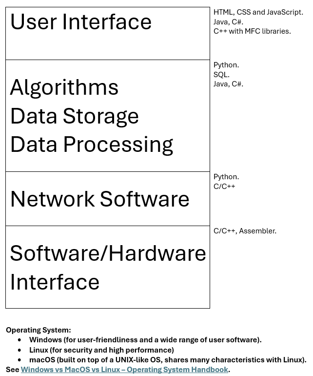 contains typical modules seen in a software product and associated languages for each module. The graphic is repeated here: